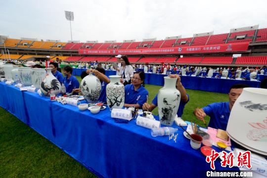 9月23日,1131名陶藝家在景德鎮(zhèn)同時創(chuàng)作,創(chuàng)下“千名陶藝家手繪花瓶”吉尼斯世界紀(jì)錄。