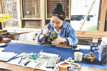 今年6月,廖莎從四川商務(wù)職業(yè)學(xué)院環(huán)境藝術(shù)設(shè)計專業(yè)畢業(yè)之后,就來到幸福公社開始“創(chuàng)客”生涯。廖莎坦言,一方面是因為自己的家就住在青霞鎮(zhèn),對這片土地有著深厚的情感;另一方面,則是看中了這里的創(chuàng)新創(chuàng)業(yè)環(huán)境。“今年4月,我在朋友的邀請下來這里玩了一次,一下子就被幸福公社的氛圍、環(huán)境吸引住了,這里不像大城市那樣喧囂,十分寧靜,我可以做自己喜歡的設(shè)計和手工。”