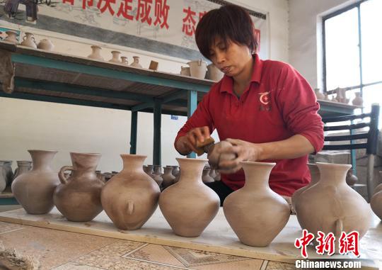 近年來,甘肅省白銀市平川區(qū)以打造“西部陶都”為目標,逐步形成集技術(shù)研發(fā)、產(chǎn)業(yè)發(fā)展、文化創(chuàng)新、生產(chǎn)銷售為一體的陶瓷產(chǎn)業(yè)體系。圖為平川區(qū)陶瓷小鎮(zhèn)藝人制作陶瓷。
