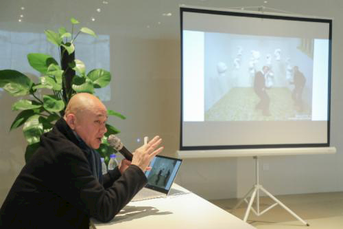 在講座開始前,劉建華為媒體和部分觀眾導(dǎo)覽了他正在設(shè)計互聯(lián)前廳展出的作品《聚核》,引領(lǐng)對他的創(chuàng)作形成初步的認(rèn)識。講座中,劉建華結(jié)合個人創(chuàng)作經(jīng)歷,和大家分享了他對于當(dāng)代藝術(shù)中材料特性的潛力的看法。