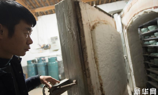 1月16日,陳衛(wèi)武開窯查看自己剛燒制的青瓷作品。