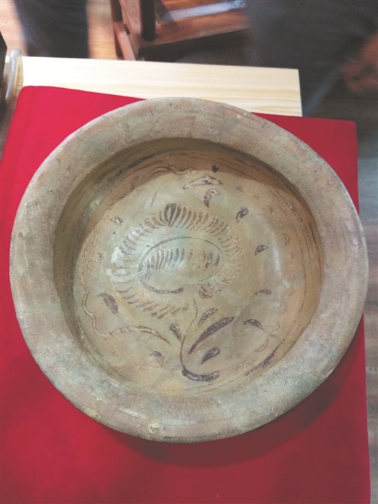 “這件是外銷往菲律賓的葵花盆,一位朋友從拍賣行拍得,后來轉(zhuǎn)賣給我。”郭福榮手持青釉褐彩葵花盆介紹,磁灶窯產(chǎn)品生產(chǎn)工藝博釆眾長(zhǎng),獨(dú)具特色,深受海外歡迎。