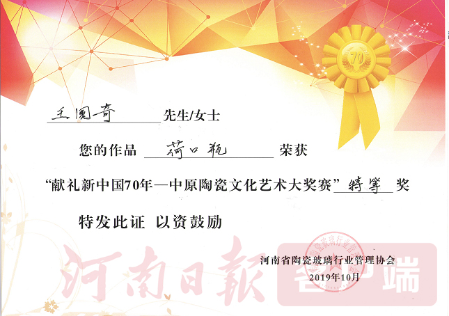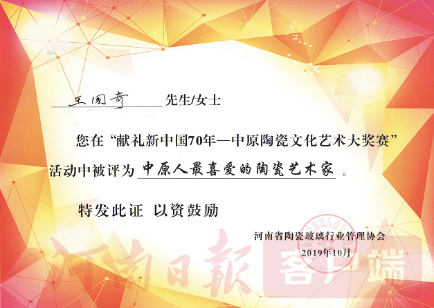 汝窯復(fù)燒大家王國奇獲“中原人最喜愛的陶瓷藝術(shù)家”