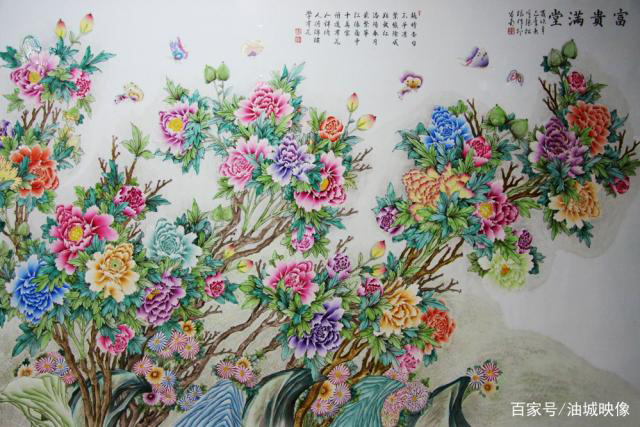 整面墻都是陶瓷燒制,最驚詫眼神的是景德鎮(zhèn)工匠將富貴的牡丹圖,也燒制在正面陶瓷墻上,這個(gè)藝術(shù)水準(zhǔn)讓人嘆為觀止。