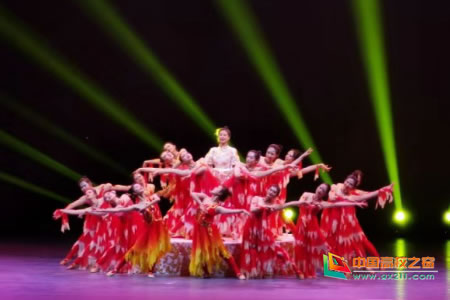 群舞《盛窯雅瓷》原為慶祝景德鎮(zhèn)陶瓷大學本科教育六十周年而創(chuàng),現(xiàn)為編排修改的第三個版本。比賽中,紅裳舞者們身著帶有瓷器紋路的華服,光影變換中肢體柔韌,舞姿優(yōu)雅,以獨特的步法、隊形還原出窯洞中的烈火。熊熊燃燒的火焰最后成灰,精美瓷器出窯。舞蹈通過擬人的手法將火焰比作瓷匠,表現(xiàn)一代代制瓷人的初心,詮釋了瓷都景德鎮(zhèn)制瓷匠人匠心不怠、傳承千年的工匠精神。