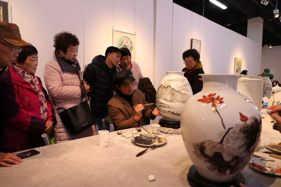 在開幕儀式之后,兩地藝術(shù)家舉行了一場(chǎng)以“傳承千年瓷藝·弘揚(yáng)海派文化”為主題的交流座談會(huì)。探索藝術(shù)發(fā)展,加強(qiáng)藝術(shù)的理論研究與實(shí)踐探索,展望兩地藝術(shù)交流平臺(tái)的搭建與發(fā)展。座談會(huì)上兩地藝術(shù)家暢所欲言,氣氛熱烈。同時(shí),另一部分參展藝術(shù)家在展廳內(nèi)給參觀的觀眾進(jìn)行了現(xiàn)場(chǎng)的陶瓷繪畫、制作瓷坯的表演,取得了很好的反響。