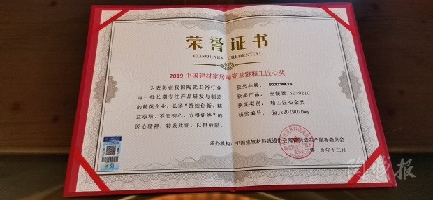 尚典衛(wèi)浴作為此次活動的參會代表之一,在中國建筑材料流通協(xié)會陶瓷制作生產(chǎn)服務委員會的評選活動中,獲得首次設(shè)立的“中國建材家居陶瓷衛(wèi)浴精工匠心”獎。據(jù)介紹,這個獎項是用以表彰堅持創(chuàng)新升級、精工智造產(chǎn)品的匠心企業(yè)精神。企業(yè)能獲得此項榮譽,也能為品牌在消費者、銷售流通服務商、建材家居市(商)場、設(shè)計師組織、裝飾工程公司、房地產(chǎn)公司等渠道內(nèi)提升品牌知名度及影響力。