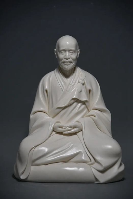 “好的作品要求形神兼?zhèn)洹?rdquo;為求將弘一法師了解得全面而透徹,他們花了很長時間去思索和資料收集,仔細研讀弘一法師的生平事跡,觀察研究弘一法師的圖像,參考觀摩各種材質的弘一法師造像,還往泉州開元寺跑了許多趟。