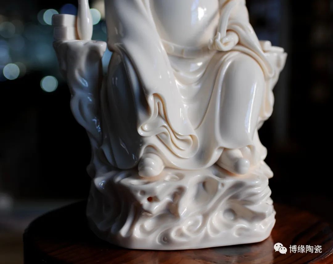 德化瓷器,以白瓷為最;白瓷之中,又以佛像為最。德化白瓷所塑佛像有性格鮮明、造型優(yōu)美、神態(tài)逼真、風(fēng)格洗練的特點。有一種單純的雕塑美和原材料的質(zhì)地美,最能體現(xiàn)佛教樸素、平和的思想。