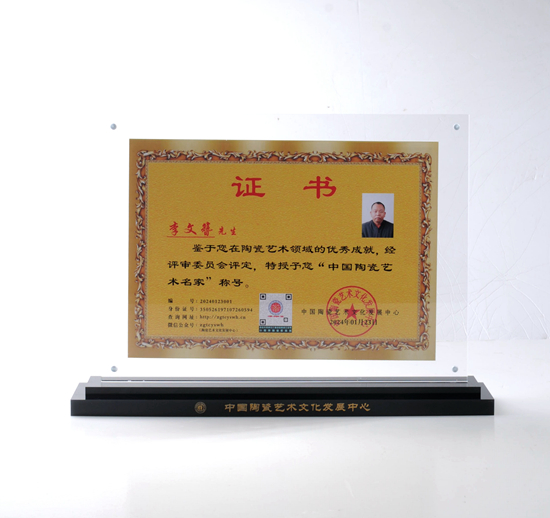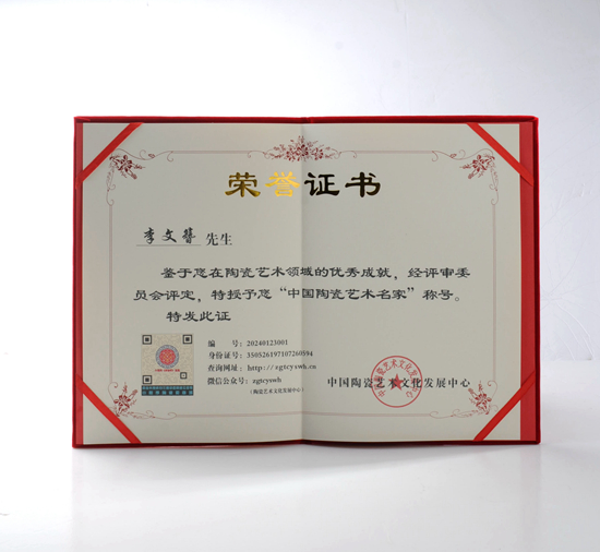 李文簪從小深受千年瓷都德化陶瓷文化熏陶,出生于一代“瓷圣”何朝宗故鄉(xiāng)瓷都德化潯中鎮(zhèn)后所,從小耳濡目染,對德化陶瓷產(chǎn)生濃厚興趣,也喜歡上了陶瓷及其燒制技藝。從小跟隨瓷都德化老藝人學(xué)藝,從藝30多年,熟練掌握泥料選配、器型設(shè)計、手拉坯、釉水配方、燒制技藝,專注茶品作品創(chuàng)作。經(jīng)過多年創(chuàng)作,其創(chuàng)作出一系列茶器作品,作品器形豐富,款式新穎,深受廣大客戶及收藏愛好者喜愛,多件作品被評為金獎,2024年作品《龍躍鳳鳴紫砂茶壺》榮獲北京中國陶瓷藝術(shù)名家作品展金獎等。
