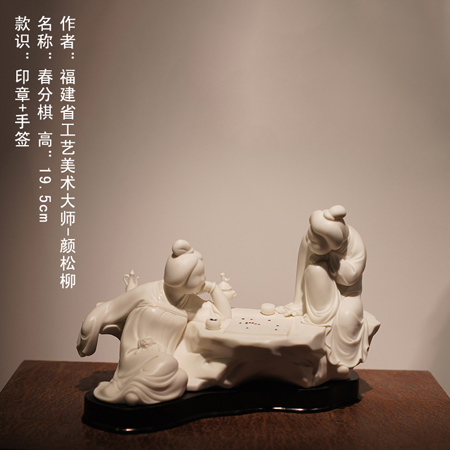 顏松柳,男,1977年8月出生,高級(jí)工藝美術(shù)師,高級(jí)技師,福建省技術(shù)能手,福建省工藝美術(shù)大師,中國(guó)收藏家喜愛(ài)的陶瓷藝術(shù)大師。現(xiàn)任德化瓷言坊藝術(shù)總監(jiān),泉州工藝美術(shù)學(xué)院客座教授,泉州市工藝美術(shù)協(xié)會(huì)理事,福建省工藝美術(shù)學(xué)會(huì)理事,中國(guó)陶瓷工業(yè)協(xié)會(huì)陶瓷藝術(shù)專(zhuān)業(yè)委員理事。1993年學(xué)藝于百年老字號(hào)“蘊(yùn)玉瓷莊”,1995年畢業(yè)于德化陶瓷職業(yè)技術(shù)學(xué)校,進(jìn)修于福建工藝美術(shù)學(xué)校雕塑系、中央工藝美術(shù)學(xué)院陶瓷系。2005年創(chuàng)立“瓷言坊”,期間為西安大唐芙蓉園設(shè)計(jì)制作大型組雕《召見(jiàn)使節(jié)》、作品《唐韻仕女》被西安市政府選贈(zèng)首次來(lái)訪的中國(guó)國(guó)民黨主席連戰(zhàn)和親民黨主席宋楚瑜(合作);為德化陶瓷博物館設(shè)計(jì)制作大型陶瓷浮雕壁畫(huà)《瓷國(guó)史話》(合作);2006年榮獲“中國(guó)收藏家喜愛(ài)的陶瓷藝術(shù)大師”稱(chēng)號(hào), 作品多次獲得“百花獎(jiǎng)” 、“金鳳凰”、“爭(zhēng)艷杯”等專(zhuān)業(yè)藝術(shù)設(shè)計(jì)大賽金獎(jiǎng)。作品《春風(fēng)得意馬蹄疾》收藏于“中國(guó)工藝美術(shù)館”、“英國(guó)珍寶博物館”;《一葦渡江》收藏于“英國(guó)珍寶博物館”、“福建博物院”;《觀滄!肥詹赜“福建工藝美術(shù)珍品館”。