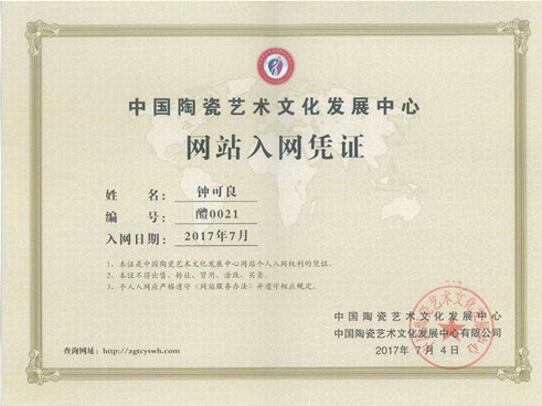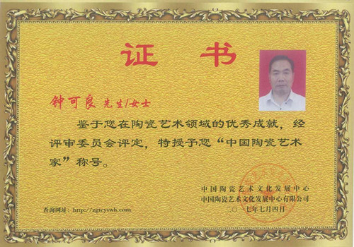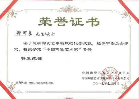 個(gè)人簡(jiǎn)介: 鐘可良:男,1969年出生于醴陵,自幼喜愛書畫藝術(shù),1993年先到湖南省書畫系、96年就讀于浙江美院學(xué)習(xí),從事釉下五彩創(chuàng)作二十余年,師從中國(guó)陶瓷藝術(shù)大師易炳萱先生門下。擅長(zhǎng)山水,走獸等,2017年加入中國(guó)陶瓷藝術(shù)文化發(fā)展中心,經(jīng)中國(guó)陶瓷藝術(shù)文化發(fā)展中心專家委員會(huì)評(píng)定為“中國(guó)陶瓷藝術(shù)家”。