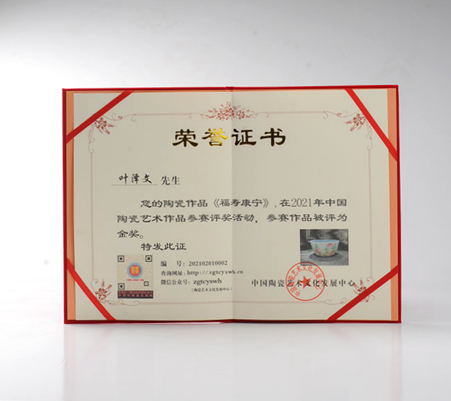 葉澤文十余年來虛心向鄧希平、董全斌等眾多國(guó)家級(jí)省級(jí)工藝美術(shù)大師學(xué)習(xí)探討。從而精心調(diào)配出獨(dú)有的原料配方,釉色秘方,淘洗工序,燒制工序流程,傳統(tǒng)工筆技法、古法青花發(fā)色。
