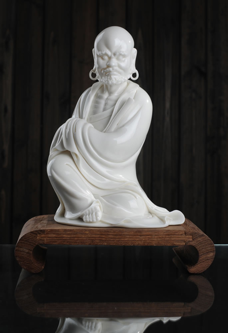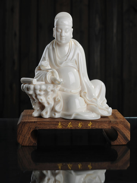 本人生長在陶瓷世家,從小酷爰美術(shù)陶瓷,1980年在泉州市陶瓷科學(xué)技術(shù)研究所,并師從著名瓷雕老藝人陳其泰習(xí)藝數(shù)年,得到技藝真?zhèn)鳎?7年創(chuàng)辦明玉陶瓷研究所,99年結(jié)業(yè)于中央工藝美院陶瓷雕塑設(shè)計系,現(xiàn)為中國藝術(shù)研究院訪問學(xué)者。從藝三十幾個春秋,其擅長傳統(tǒng)風(fēng)格結(jié)合現(xiàn)代藝術(shù)特征,形成自己風(fēng)格,創(chuàng)作有;觀音、彌勤、羅漢、關(guān)公、文昌帝、仕女等,歷史人物祌仙佛像故事及現(xiàn)代生活題材等作品,日用品采用手拉坯制作的香爐、花瓶、茶壺、酒具、文房四寶等。許多作品獲得國內(nèi)外金獎19項、銀獎7項、銅獎6項。作品深受藝術(shù)愛好者爭購及各大博物館的珍藏。長期以來潛心于藝術(shù)刨作又收藏德化窯古瓷與研究,現(xiàn)收藏品兩千余件整理形成館系,在2005年創(chuàng)辦“瓷藝堂”古瓷展覽館。學(xué)術(shù)理論總結(jié)撰寫十多編論文的發(fā)表,編著《德化窯古瓷珍品鑒賞》、《明清德化白瓷》等書!妒_漢》,創(chuàng)作于1993年春,榮獲永德信、明康文教基金會第一屆陶藝金陶獎特別獎;