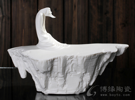 作品以德化特有的溫潤如玉的“中國白”為胎質,純手工制作,所塑人物性格鮮明,神態(tài)逼真,造型優(yōu)美,風格洗練。