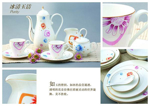 【品名】冰清玉潔餐具茶具 【材質(zhì)】高白強(qiáng)化骨瓷,經(jīng)過1380度高溫?zé)贫,聲音清?/span> 【規(guī)格】60頭 【等級(jí)】一等精品 【包裝】禮品盒