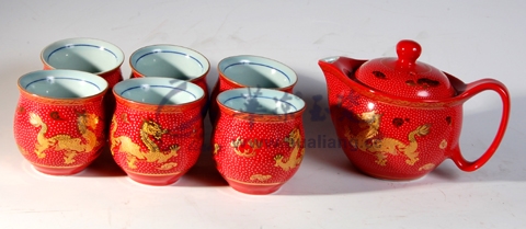 白點紅金龍三用壺杯組