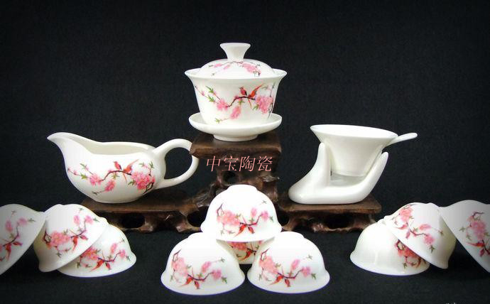 茶具套裝 14頭白玉瓷喜相逢功夫茶具 可印公司logo,