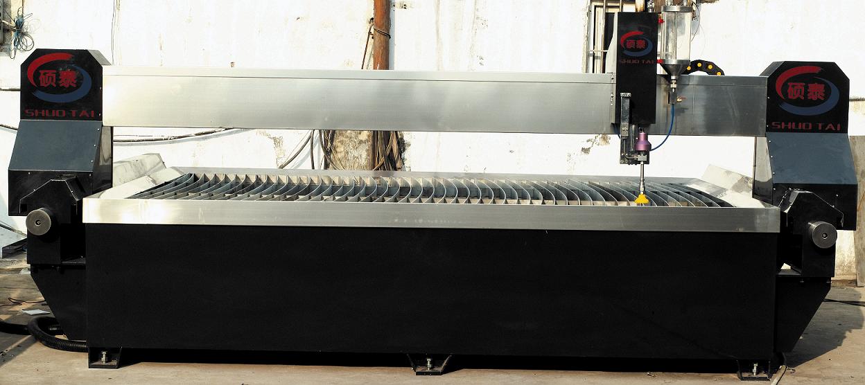 13、獨(dú)特沙閥設(shè)計使流砂理順暢,清理更方便,并可防止回水現(xiàn)象發(fā)生。 型號 | ST1212 | ST2015 | ST2515 | ST3015 | ST3020 | ST4020 | 結(jié)構(gòu)型式 | 懸臂式 | 懸臂式 | 懸臂式 | 龍門式 | 龍門式 | 龍門式 | 切割尺寸(mm) | 1300*1300 | 2100*1600 | 2600*1600 | 3100*1600 | 3100*2100 | 4100*2100 | 切割行程 | X-軸(mm) | 1200 | 2000 | 2500 | 3000 | 3000 | 4000 | Y-軸(mm) | 1200 | 1500 | 1500 | 1500 | 2000 | 2000 | Z-軸(mm) | 130 | 130 | 130 | 130 | 130 | 130 | 切割材料厚度(mm) | 不銹鋼60 | 鋁12 | 陶瓷60 | 塑料泡沫300 | 玻璃120 | 鈦40 | CNC控制器 | 步進(jìn)系統(tǒng)/交流伺服系統(tǒng) | 精度 | 切割精度 | ±0.01mm | 重復(fù)定位 | ±0.05mm | 快速定位與速度 | 6000/15000mm/min | 電源 | 220V/380V/415VAC,50/60Hz |